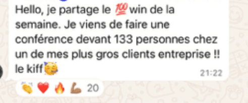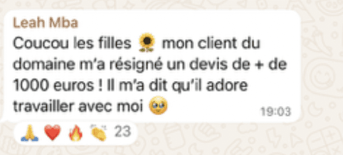 Ou encore Jeanne-Camille qui s'est lancé avec Mon Biz Aligné et qui à eu ses 2 premiers clients