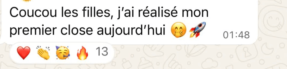 Dans notre espace WhatsApp “Alignées”, tu avances portée par l’énergie du groupe. Tu poses tes questions, tu partages tes victoires et tu reçois des réponses en temps réel..